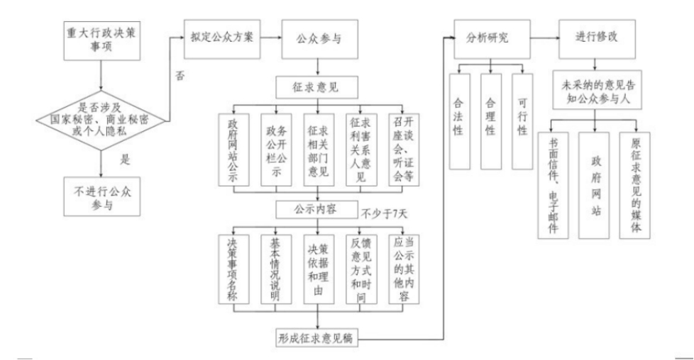 第三條 本制度所稱的重大行政決策公眾參與工作制度是指鎮(zhèn)政府行政機(jī)關(guān)在管理社會(huì)事務(wù)和促進(jìn)地方經(jīng)濟(jì)社會(huì)發(fā)展過程中,作出的具體行政行為涉及社會(huì)公眾或組織的重大切身利益或者對(duì)社會(huì)有重大影響的事項(xiàng)在正式?jīng)Q定之前,充分聽取社會(huì)公眾意見和建議后再作出決定的制度。