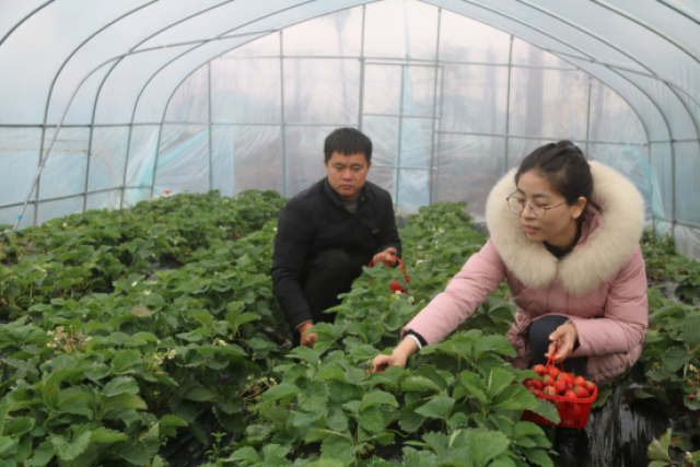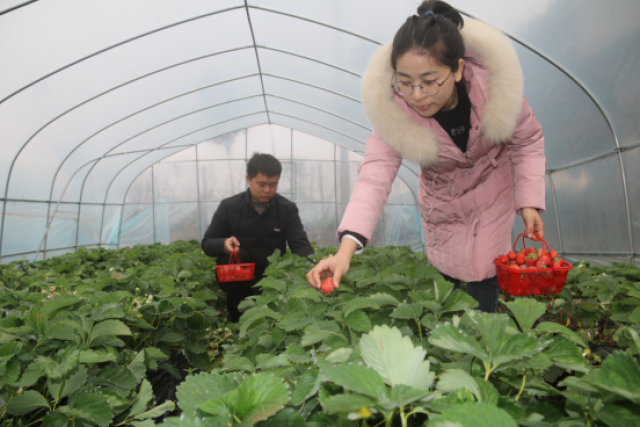 2020年12月16日,在樟樹市張家山街道蛟湖村草莓種植園內,一顆顆鮮紅的草莓,長勢喜人,吸引了大量游客前來采摘。近年來,該街道積極做好農業生產基地土地租賃、群眾創業個體服務管理工作,促進以草莓、火龍果、葡萄、百香果等為主打品種的觀光休閑農業發展,并通過快遞配送、引導自媒體宣傳,不斷提高經濟效益。