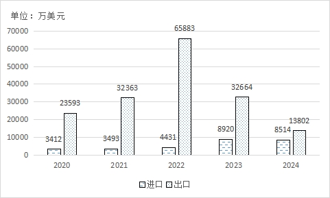 全年貨物貿易進出口總值22315萬美元,下降46.3%。其中出口完成13802萬美元,下降57.7%進口完成8514萬美元,下降4.6%。