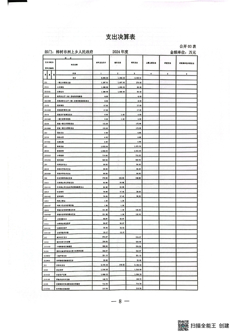 樟樹(shù)市洲上鄉(xiāng)人民政府2024年度部門(mén)決算