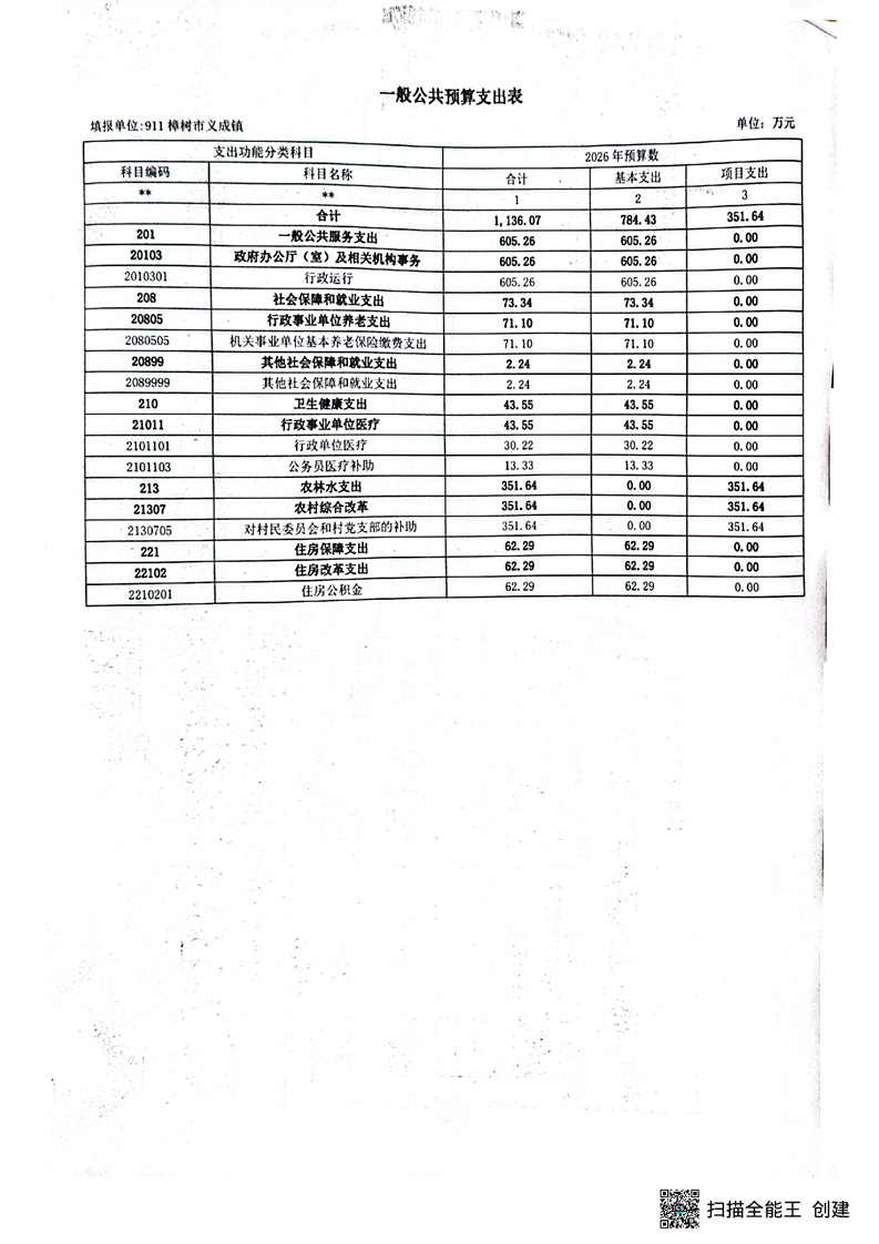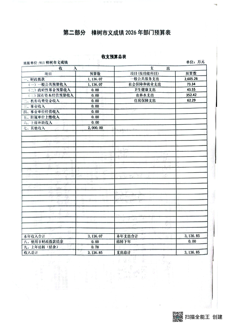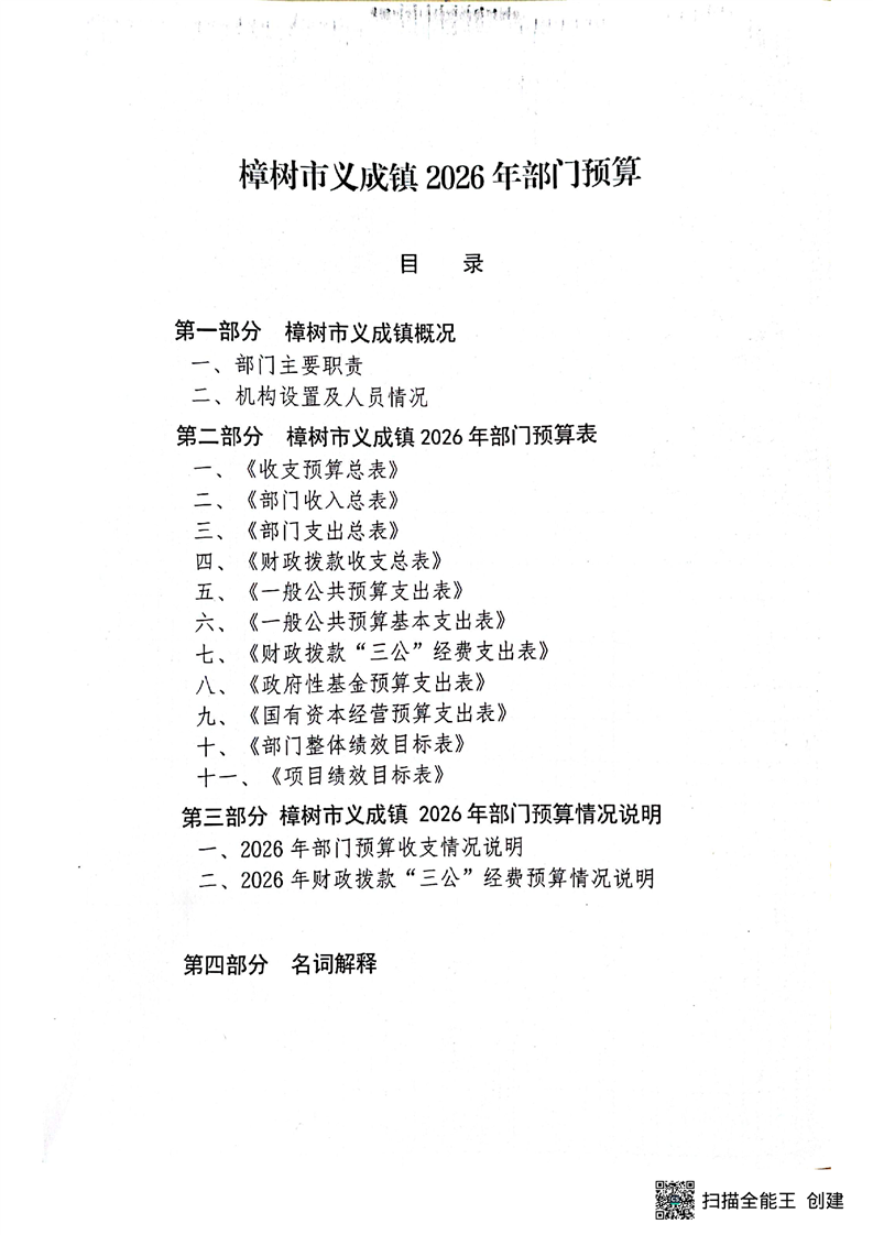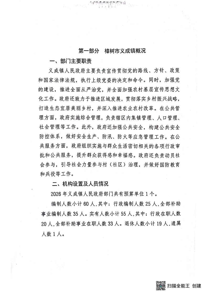樟樹市義成鎮人民政府2026年度部門預算