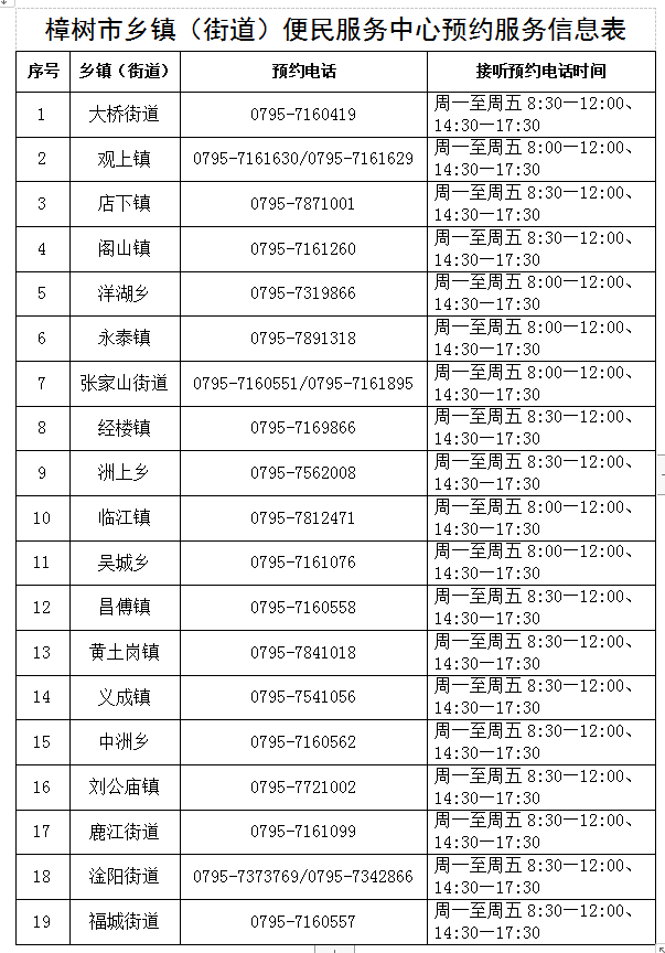 (一)電話預約:在工作日工作時間撥打各鄉鎮(街道)便民服務中心預約電話(詳見附件),由專人接聽并登記預約信息。