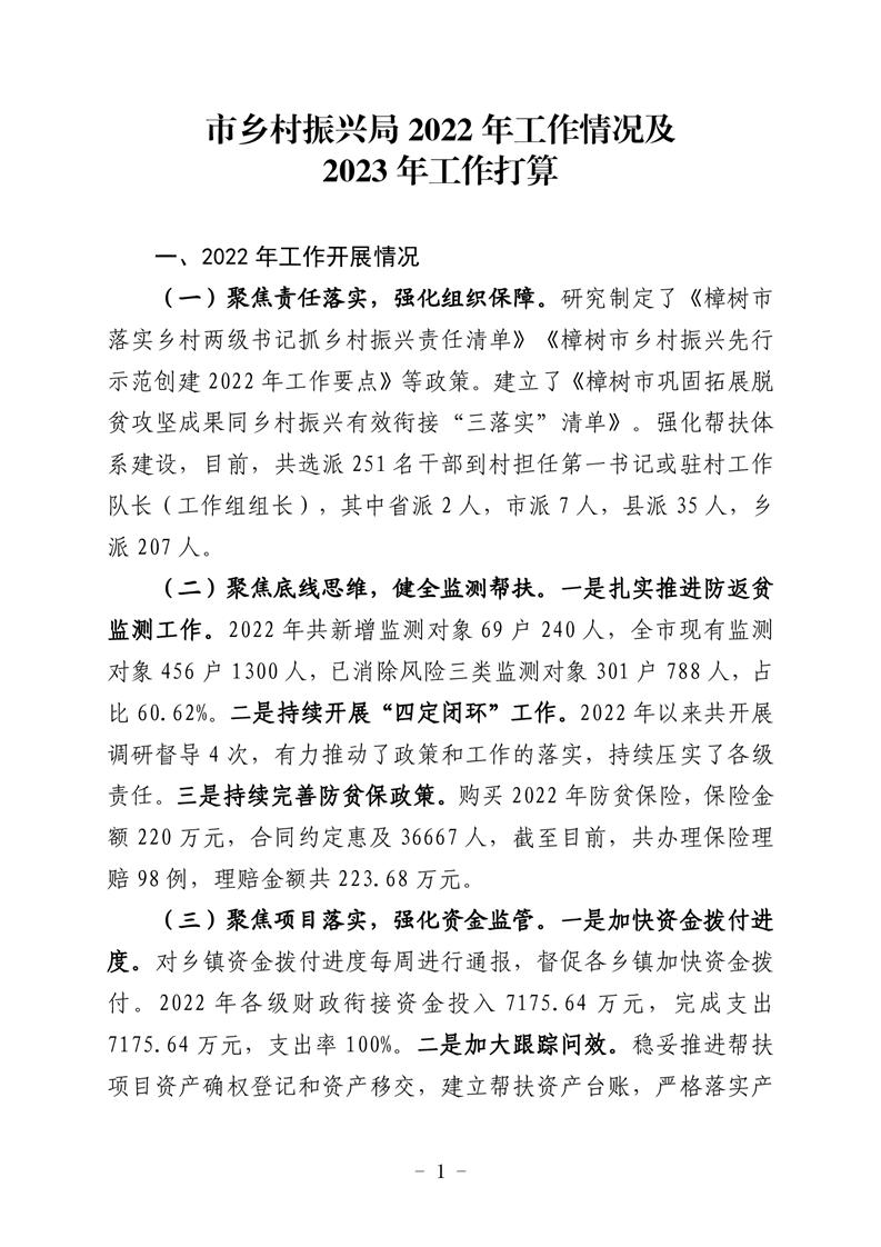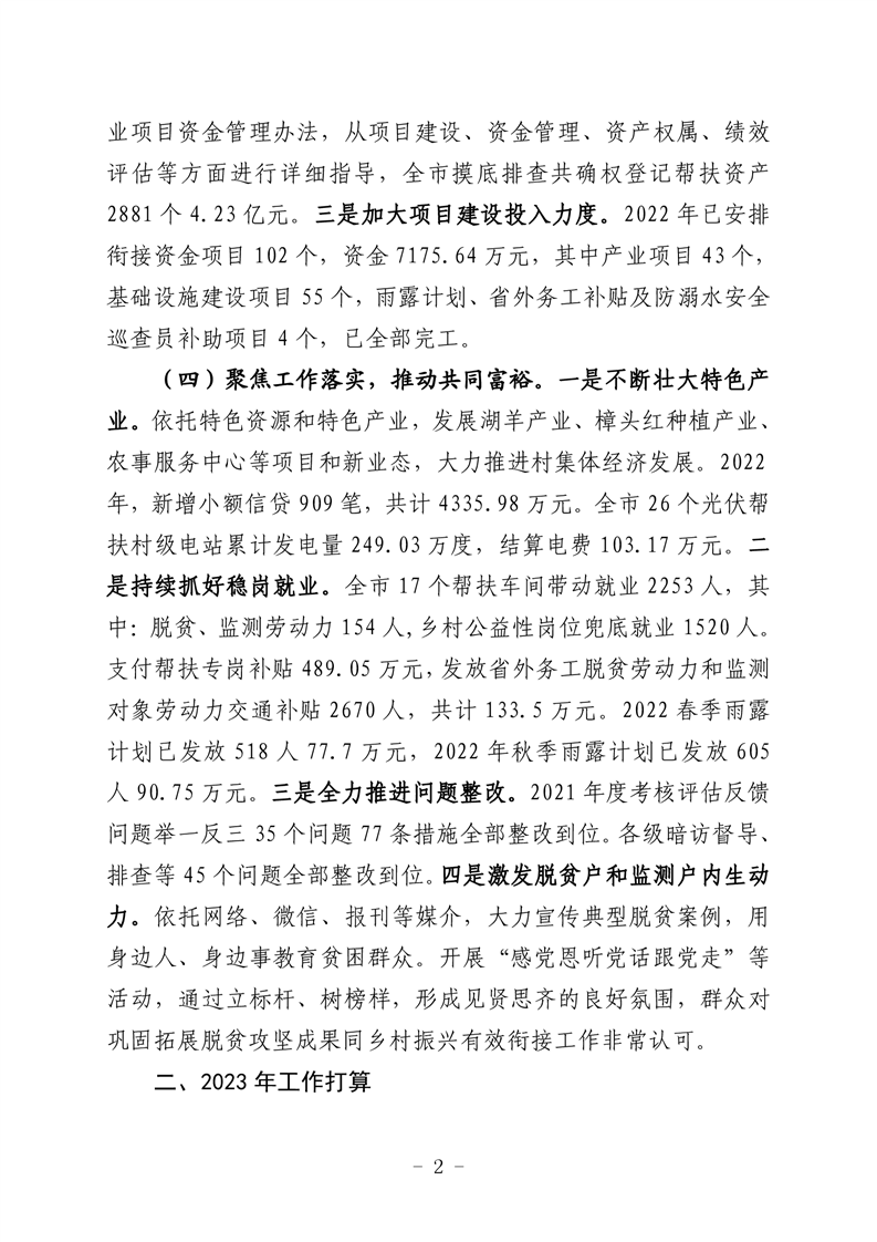 市鄉村振興局2022年工作總結及2023年工作打算